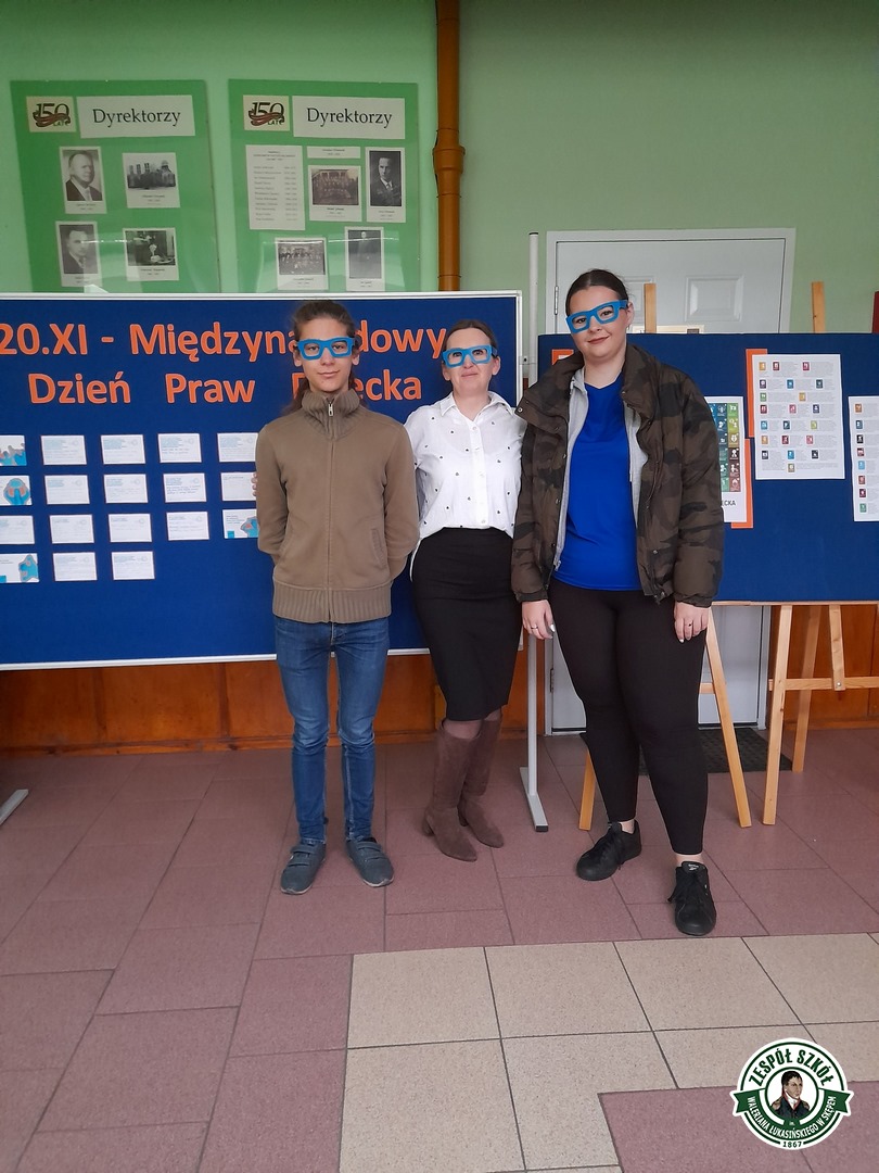 Ponadto, uczennica Angelika Kłys z klasy 4 TG rozdawała niebieskie okulary, które symbolizują, że każde dziecko, niezależnie od jego pochodzenia, miejsca zamieszkania, koloru skóry czy wyznania ma takie same prawa – prawa człowieka.